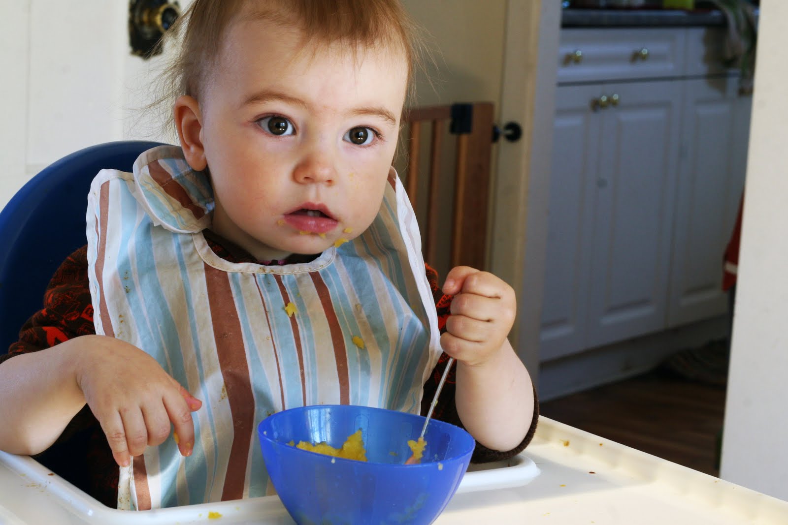 Mmm, I bought these tasty delights from the farmer's market on Saturday and she adores them. (No fancy recipe here -- just boiled and mashed. Usually I would bake them, but was pressed for time.)